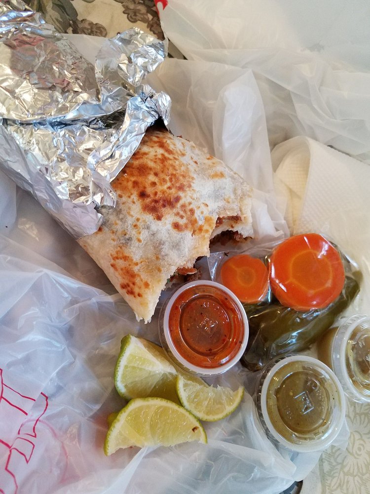 This is a super convenient drive-through serving good Mexican food, fast. Had the Chile Verde and the Lengua (beef tongue) in 'regular' burritos which have rice, beans, meat and optional onions and cilantro). Both were delicious. They also have a read and a green salsa as accompaniments. I preferred the red but both were quite good.